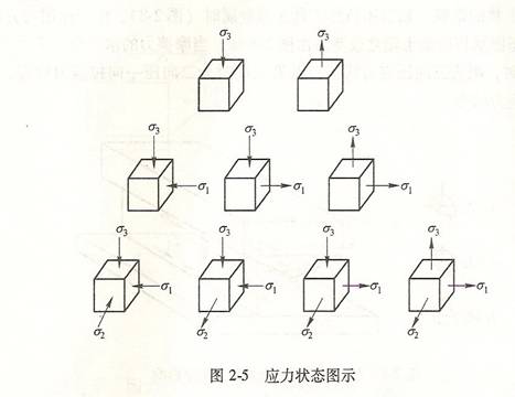 (2)35CrMo無縫鋼管主應(yīng)力圖示:表示一點的主應(yīng)力大小和方向的應(yīng)力狀態(tài)圖示。主應(yīng)力圖示有九種。四個為三向主應(yīng)力圖,三個為平面主應(yīng)力圖,二個單向主應(yīng)力圖示如下圖