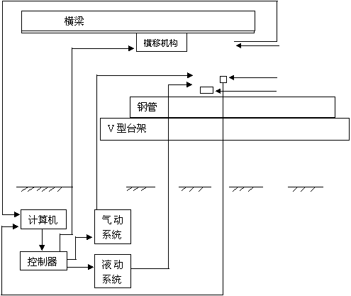 16Mn無(wú)縫鋼管經(jīng)過(guò)撥料機(jī)構(gòu)橫向進(jìn)入臺(tái)架—噴頭下降—加速—調(diào)整—均速—調(diào)整—減速—噴頭升起—鋼管進(jìn)入輸出鏈。
